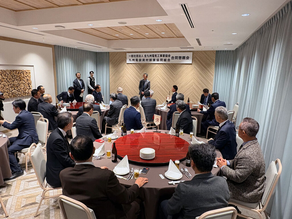懇談会での議論を受け、工販が直接対話する貴重な機会となりました。親睦を深めるとともに、パートナーシップの強化が再確認されました。会は、九州電設資材卸業協同組合の立石副理事長による中締めで盛会のうちに終了しました。